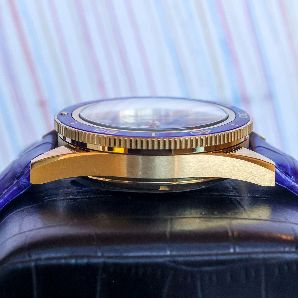 Since its introduction in 1957, the Seamaster 300 has embodied Omega’s dual identity as a manufacturer of professional diving instruments and refined luxury timepieces. This lapis lazuli edition elevates the classic design into the realm of collectible artistry, showcasing one of the rarest natural stones in watchmaking. With the Co-Axial Master Chronometer Calibre 8912 inside, it combines cutting-edge anti-magnetic technology with timeless design, making it both technically advanced and visually striking. Collectors prize this reference for its rarity, as few dials offer the individuality and depth of natural lapis.