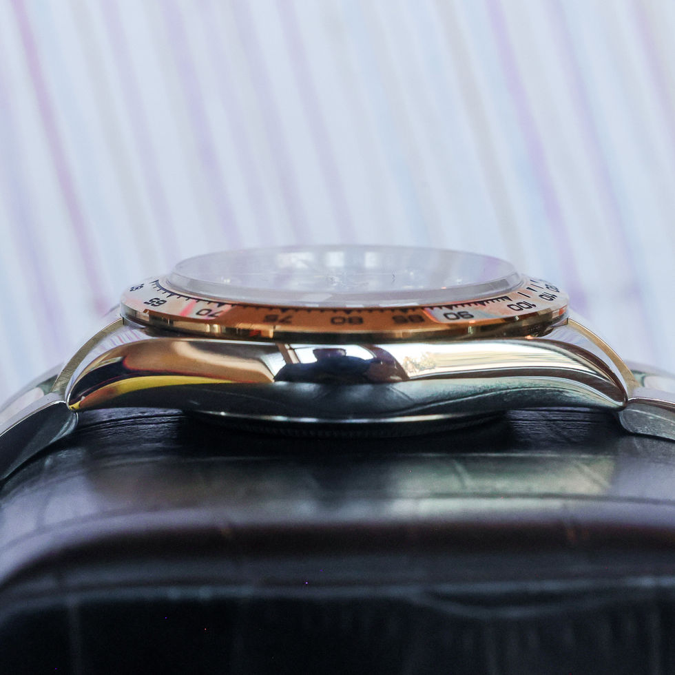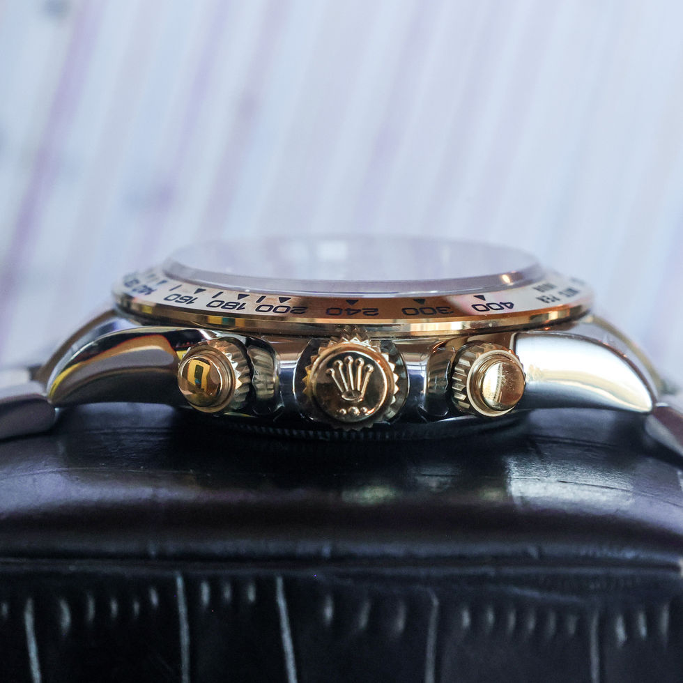 The Daytona 116503 combines the luxury of diamond hour markers with the enduring appeal of a two-tone Rolesor design. Its unworn condition, full set, and active warranty make it an especially desirable reference for collectors. This model captures the prestige of the Daytona line while offering versatility that transitions seamlessly between sport and formal wear.